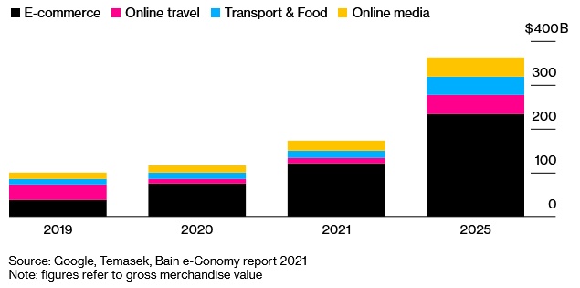 该研究预计,东南亚地区2025年电子商务GMV将达到2340亿美元,超过此前预计的1720亿美元,届时将占3630亿美元数字经济规模的64%。谷歌及其合作伙伴在研究报告中称,“消费者和商家行为的持续转变、加上投资者信心强劲,已经将东南亚带入了‘数字时代’,该地区的GMV将在2030年达到1万亿美元。”