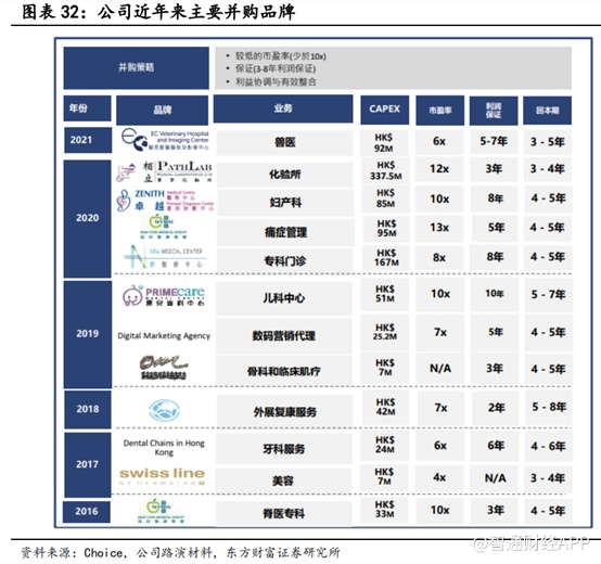 在医美之外,为了满足客户的多元化需求,医思健康(02138)在专科医院以及宠物医院方面均有涉及,除了自行开店以外,并购整合是医思健康近几年来主要的发展策略。