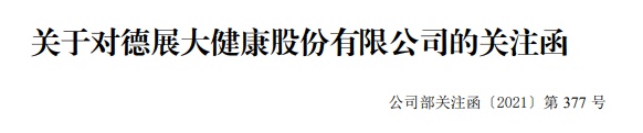 深交所提出,请德展健康就上述问题做出书面说明,在2021年11月18日前将有关说明材料报送深交所上市公司管理二部并对外披露,同时抄送派出机构。