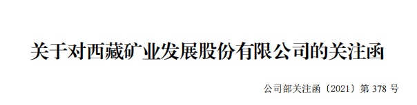 深交所提出,请西藏矿业就问题做出书面说明,在 2021年11月15日前将有关说明材料报送相关部门并对外披露,同时抄送派出机构。