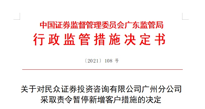 广东证监局责令该分公司自收到决定书之日起暂停新增客户六个月,并要求该分公司开展全面整改工作,进一步加强内部控制,切实提高合规管理水平。暂停新增客户期满,该分公司应当及时向广东证监局提交书面整改报告。