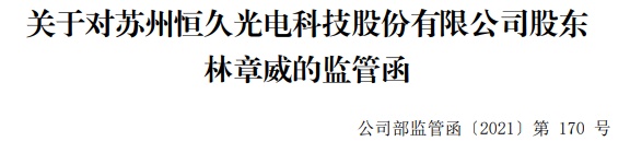 智通财经APP获悉,11月10日,深交所对恒久科技(002808.SZ)股东林章威发出监管函。监管函指出,经查,林章威于2021年8月3日卖出恒久科技股份导致累计卖出股份数量违反前述关于“自股份购买完成之日起24个月内,减持股份数额不超过购买股份总数的20%”的承诺。深交所多次通知恒久科技提醒林章威不得继续卖出股份,严格履行公开承诺。此后,林章威仍持续多日、多次卖出恒久科技股份,在2021年8月3日至2021年10月29日期间累计卖出股份超过前述承诺可卖出股份56,136股,成交金额40多万元。