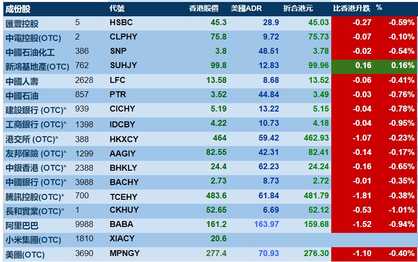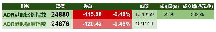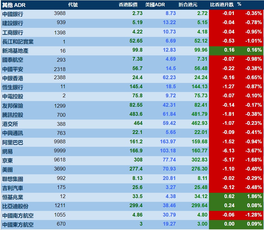智通财经APP获悉,周三美股三大指数齐跌,港股ADR指数下跌,按比例计算,收报24880点,跌115.58点或0.46%。