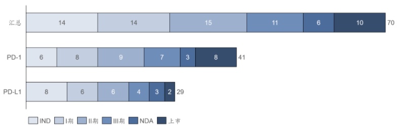 Fig 1. 国内临床各阶段PD-1/PD-L1产品数量(Source: Insight)