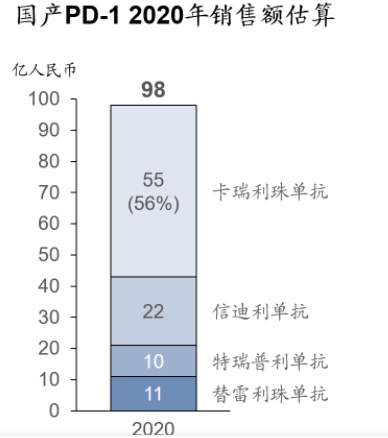 Fig 3. 国产PD-1 2020年销售额估算(Source: 公司年报,国金证券研究所估算)