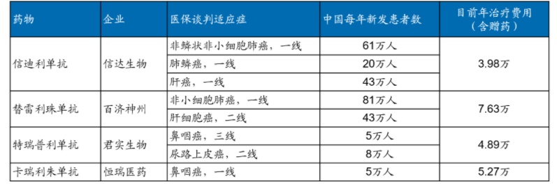 2020年医保谈判,另外3家国产PD-1也积极加入,但医保支付价比信迪利单抗的10万年治疗费用下降了25%-45%。