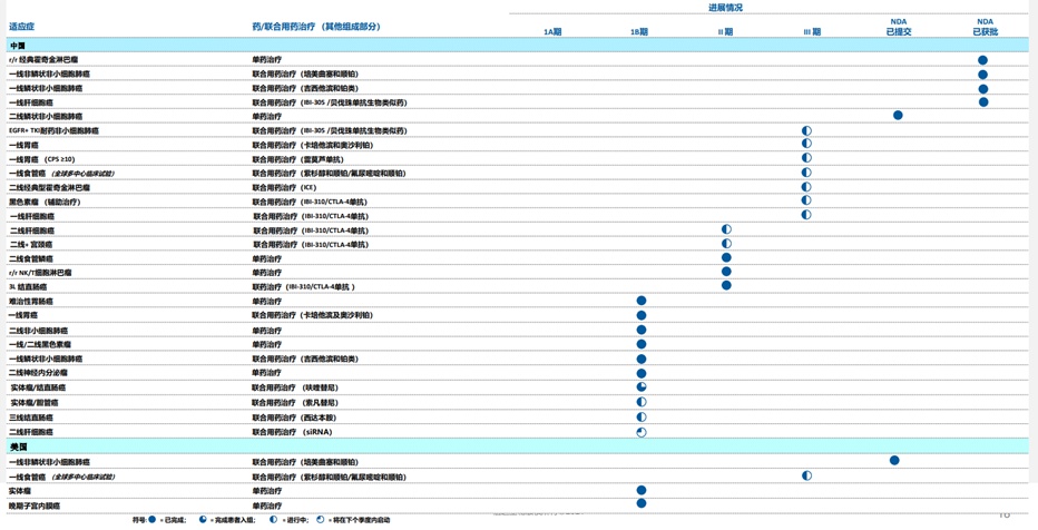 信迪利单抗在美国的一线非鳞状非小细胞肺癌适应症已经处于NDA阶段,预计2022年获批。此外联合奥沙利铂和卡培他滨治疗一线胃癌的适应症的NDA也于近期获得药监局受理。中国的二线鳞状NSCLC最近撤回了NDA申请,考虑到一线鳞状NSCLC已经获批,二线适应症影响不大。