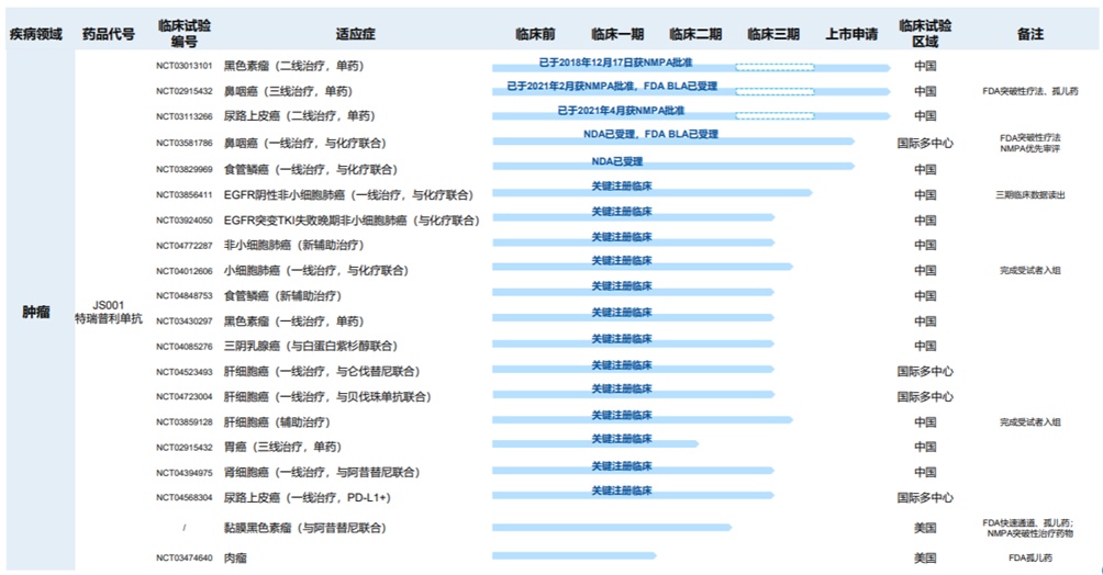Fig 11. 特瑞普利单抗适应症管线(Source: 公司官网)