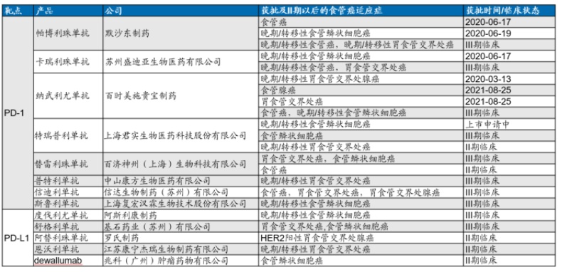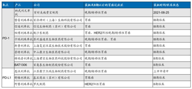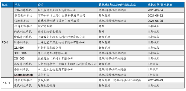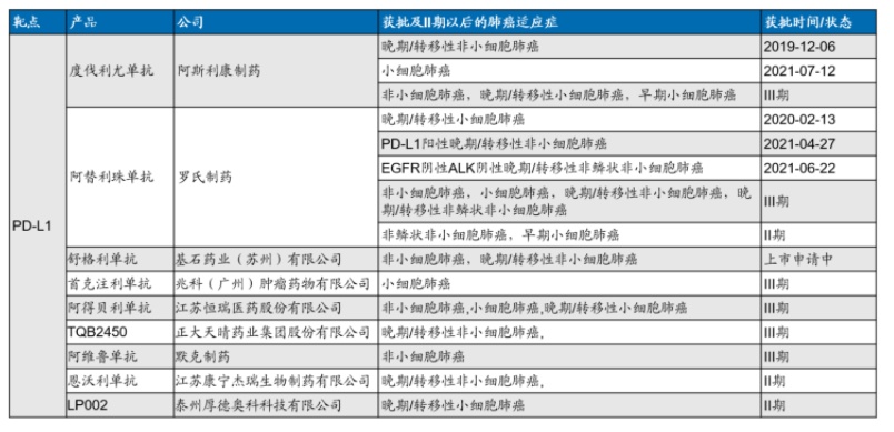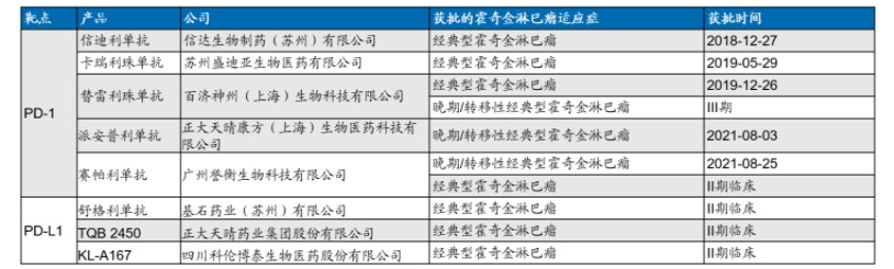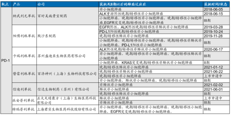 1. PD-1/PD-L1是热门靶点,目前已有8个PD-1产品和2个PD-L1产品在中国上市。