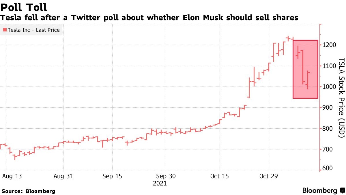 据了解,马斯克经常在推特上发帖子,也经常讨论有争议的话题。上周末,一项关于他是否应该出售部分特斯拉股份的调查引发了一场轩然大波,然而市场却将这一调查与其所面临超过150亿美元的股票期权税联系起来。此外,投票结果显示,58%的网友支持其出售10%的股票,投资者对大量抛售股票的后果表示担忧,导致特斯拉股价在两天内下跌了16%。