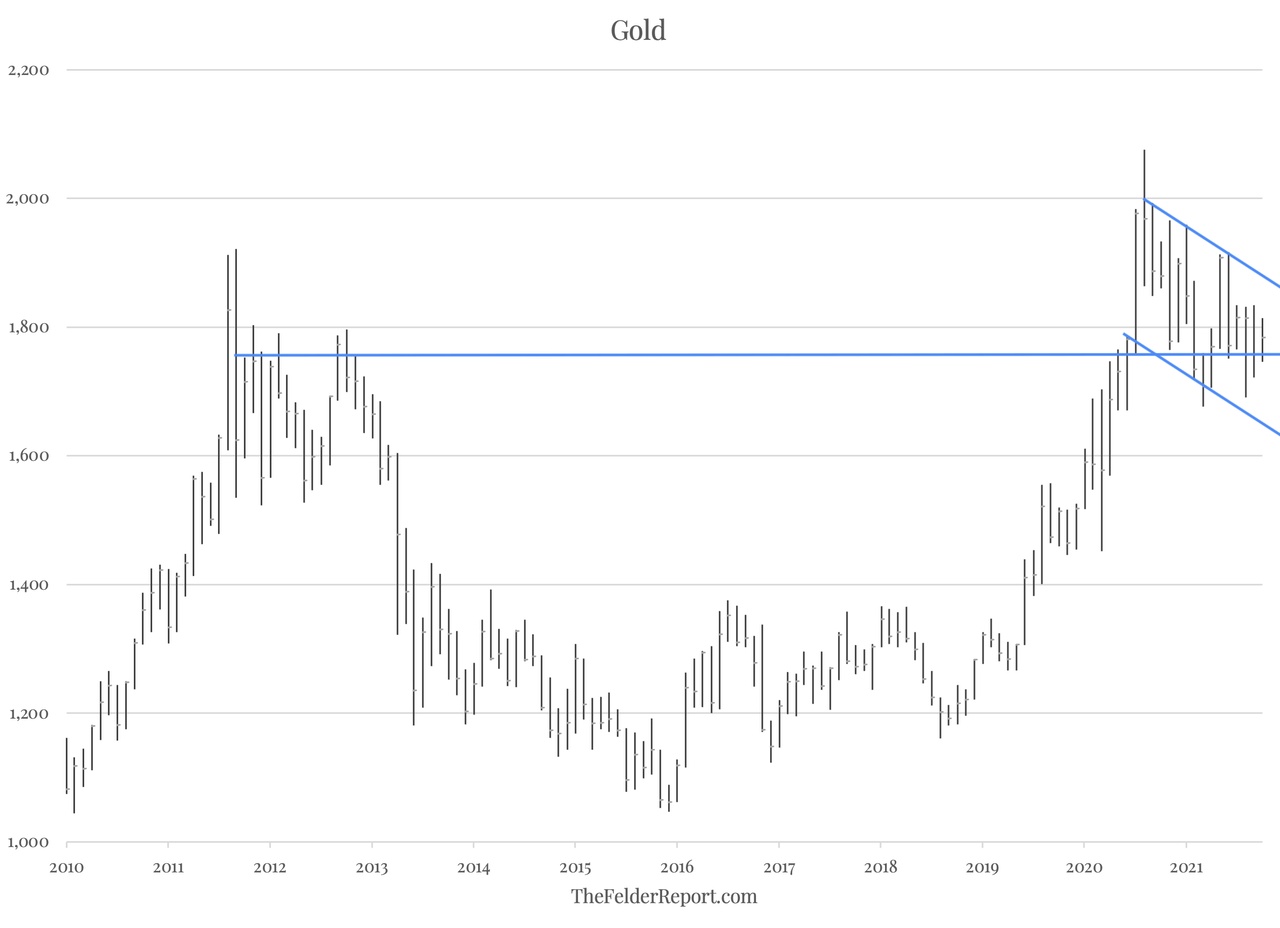 目前的黄金价格月线图就是一个很好的例子,可以说明这种方法如何帮助增加技术面的清晰度。