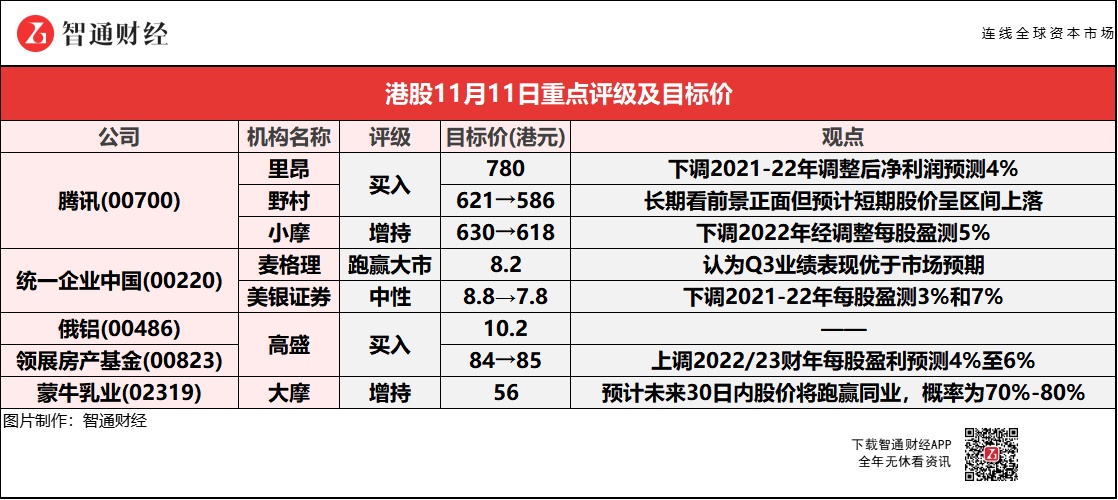 小摩下调腾讯(00700)2022年经调整每股盈测5%以反映Q3业绩。未来一年若市场上调对腾讯盈利预期或盈利增长转势,相信其可跑赢大市。投资者对监管风险忧虑有所放缓,管理层表示目前对成年人游戏市场监管风险低,而新个人信息收集法例对广告业务影响轻微,预计短期股价区间上落。并认为腾讯第三季业绩参差不齐,广告业务展望转弱,不及预期;游戏业务展望改善;对广告和游戏监管风险似乎较预期温和。