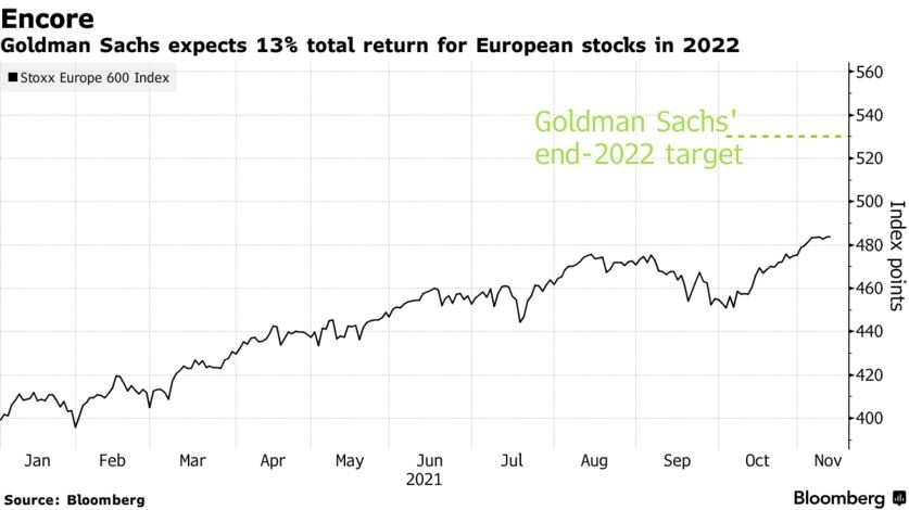 “我们对2022年欧洲股市的前景保持乐观,”以Sharon Bell为首的策略师周四在一份报告中表示,“尽管回报率创下纪录,但欧洲股票现在看起来比2021年初更便宜,并且相对于美股而言仍处于低估值水平,相对于其他资产而言更是无可比拟的优质资产。”