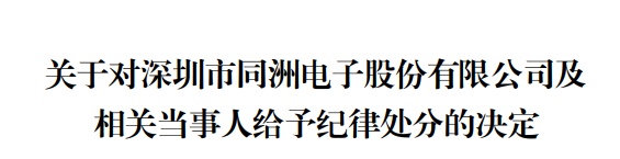 深交所作出如下处分决定:一、对深圳市同洲电子股份有限公司给予公开谴责的处分;二、对深圳市同洲电子股份有限公司时任董事长袁明,时任董事、总经理、财务总监颜小北,时任副总经理袁团柱给予公开谴责的处分;三、对深圳市同洲电子股份有限公司时任董事兼副总经理侯颂、吴远亮,时任董事李宁远、陈友,时任独立董事欧阳建国、潘玲曼、肖寒梅,时任监事王红伟、刘一平、王洋,时任副总经理王健峰、王特,时任董事会秘书、副总经理贺磊给予通报批评的处分。