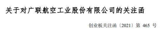 深交所提出,请广联航空就上述事项做出书面说明,在2021年11月17日前将有关说明材料报送深交所创业板公司管理部并对外披露,并抄送黑龙江证监局上市公司监管处。
