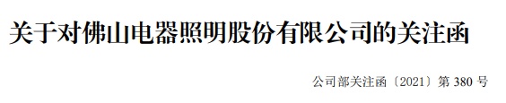 深交所提出,请佛山照明就上述问题做出书面说明,在2021年11月17日前将有关说明材料报送深交所上市公司管理二部并对外披露,同时抄送派出机构。