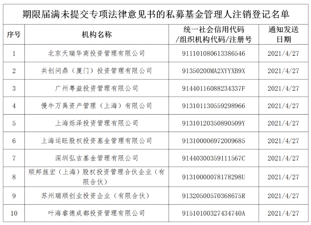 附件:期限届满未提交专项法律意见书的私募基金管理人注销登记名单