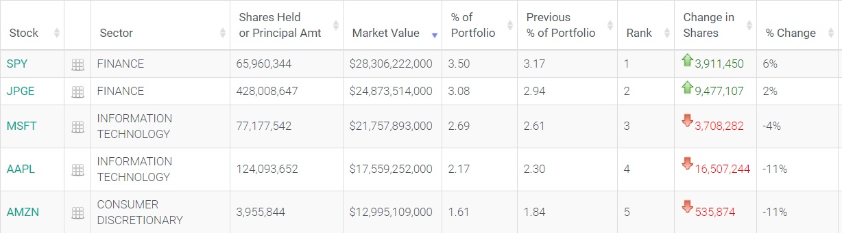智通财经APP获悉,根据美国证券交易委员会(SEC)披露,摩根大通(JPM.US)递交了截至2021年9月30日的第三季度持仓报告(13F)。