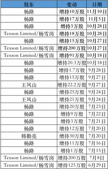 不仅机构一致看好,中国旭阳集团的控股股东及高管亦“自掏腰包”,在过去几个月里持续增持公司股份。11月至今,中国旭阳集团的执行董事杨路便分别于11月5日、11月10日以每股均价4.5341港元和4.52港元增持17万股、10万股,增持动作完成后,杨路累计持有公司股份163万股,持股比例约为0.04%。另据统计,下半年来包括中国旭阳集团控股股东Texson Limited、董事会主席兼行政总裁杨雪岗、执行董事兼副总裁韩勤亮、执行董事兼副总裁王风山等重要股东均有过增持公司股份的动作。