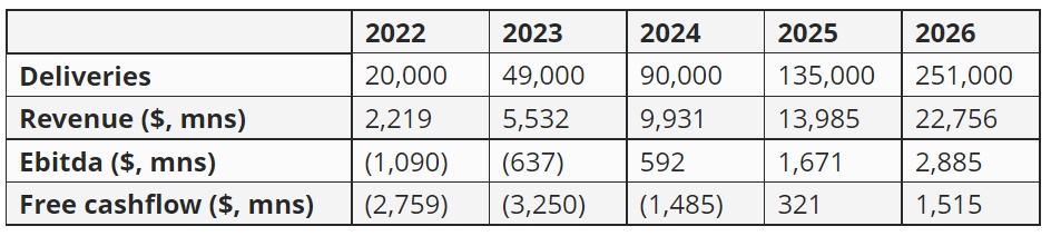 Lucid未来几年的年度交付、收入、收益和现金流预测