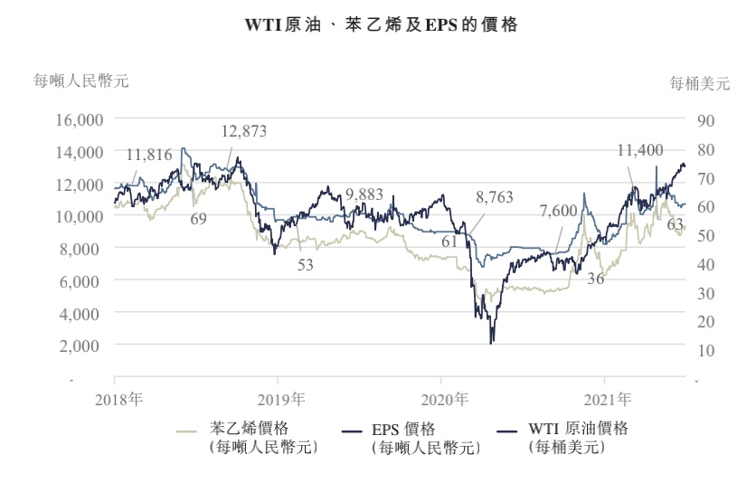 招股书显示,由于公司EPS产品的平均售价与中国EPS市价大致相符,因此,苯乙烯与EPS市价之间的波动及差价将对公司的收益、销售成本及毛利率造成影响。