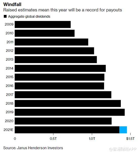 智通财经APP获悉,根据基金管理公司 Janus Henderson Investors 的数据,由于公司现金充裕和经济复苏,今年全球企业派息有望达到创纪录水平。