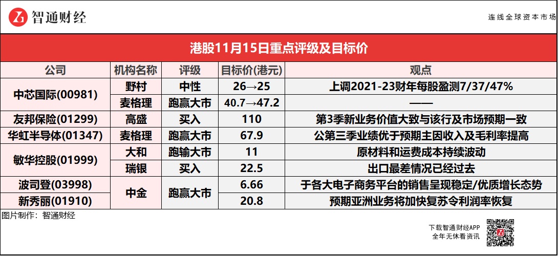 麦格理称,中芯国际(00981)管理层对取得设备出口许可的信心加强,预计今年全年产能可增长17%,2022/2023年增长17%及14%,公司第三季业绩与指引相符,营运利润率高于市场预测,第四季指引显示毛利率小幅上升。