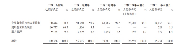 公司主要从事三大业务板块,即:(1)音乐版权许可及音乐录制,公司视其为公司的主要业务板块;(2)演唱会主办及制作;及(3)艺人管理。在音乐版权许可及音乐录制业务中,公司从音乐作品的音乐创作人处获取词曲的许可,再将音乐作品许可给数字流媒体播放平台、专辑制作公司和营销及广告公司,以及其他娱乐公司。在演唱会主办及制作业务中,公司与一些供应商合作,例如演唱会及活动的会场提供商、艺人、舞者、乐师、票务代理机构、保险公司、舞台制作公司。公司的客户包括普通观众、演唱会赞助商以及演唱会和活动主办方。在艺人管理业务中,公司安排公司管理的音乐艺人出席营销及广告公司、商业企业、数字流媒体播放平台及电视广播公司的音乐演出。