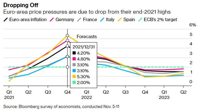 受能源价格上涨、供应链中断和其他疫情相关影响,欧元区通胀达到2008年以来的最高水平。许多经济学家同意欧洲央行的看法,认为2023年通胀率将回落至目标水平以下,但欧洲一些地区对物价飙升感到恐慌。
