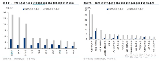 虽然2021 年乘用车总体销量出现一定程度的下滑,但新能源车表现亮眼,尤其是自主品牌快速崛起。