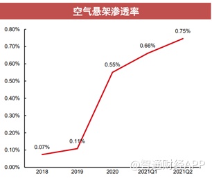 由于定位高端,且作为选配,所以空气悬架渗透率一直不高,到今年上半年的整体渗透率也不到1%。