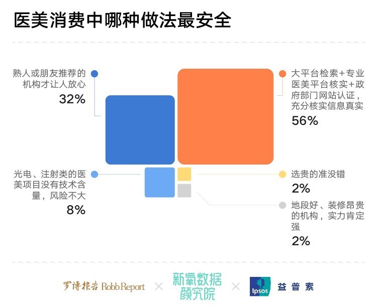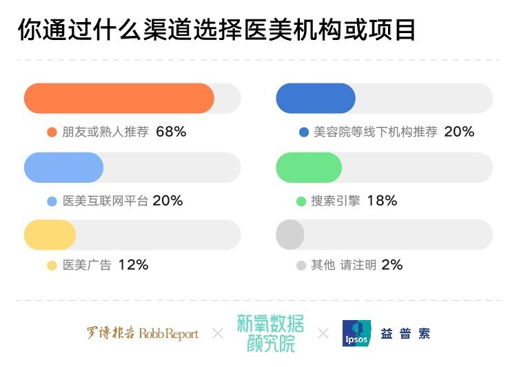 调研显示,高净值人群医美消费市场增长可期。受访的高净值人群中,44%没有体验过医美消费,有22%对医美消费持有期待;超过六成的受访者会通过“熟人或朋友介绍”来选择医美机构。这一非理性决策因素,不仅给“杀熟”提供了机会,更凸显出专业、安全医美平台的价值。