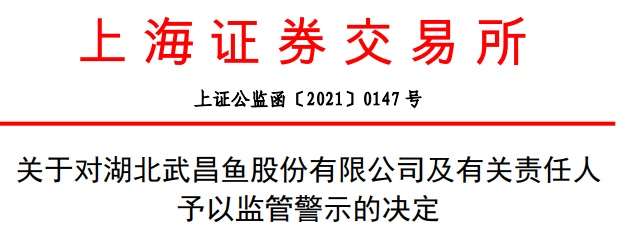 智通财经APP获悉,11月16日,上交所向湖北武昌鱼股份有限公司(*ST昌鱼,600275.SH)及有关责任人予以监管警示。经查,2021年2月27日,湖北省梧桐湖新区管理委员会决定征收*ST昌鱼所属月山渔场厂房及地面附属设施。同日,管委会给公司拆迁补偿金额为280.66万元,占公司上一年经审计归属母公司股东净利润绝对值的10.7%。同时,管委会就相关损失及前期经营补偿与公司签署协议书,公司确认营业外收入350.53万元。上述事项已达到临时公告的信息披露标准,但公司迟至2021年6月3日才披露,相关信息披露不及时。上交所对*ST昌鱼时任董事长兼董事会秘书高士庆、时任总经理樊国红予以监管警示。