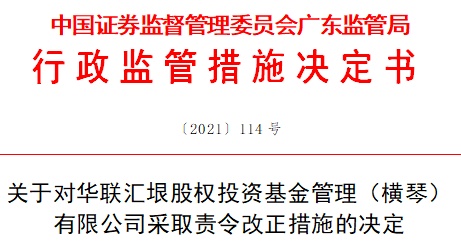 智通财经APP获悉,据广东证监局11月16日消息,广东证监局对华联汇垠股权投资基金管理(横琴)有限公司(公司简称:华联汇垠)采取责令改正措施的决定。经查,发现华联汇垠存在间接向投资者承诺保本保收益,定期向投资者支付固定收益的情形。未按照《基金合同》风险揭示书的约定,向投资者披露运用基金财产从事重大关联交易的情况等违规行为。对此,广东证监局决定对华联汇垠采取责令改正的行政监管措施。