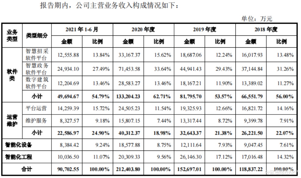 智慧政务领域,公司专注于社会治理信息化,主要为政府部门提供“互联网+政务服务”平台、政府协同办公平台、智慧公安平台及政务大数据平台等软件平台,并提供一系列配套智能化设备、技术维护服务及智能化工程施工,形成智慧政务整体解决方案。