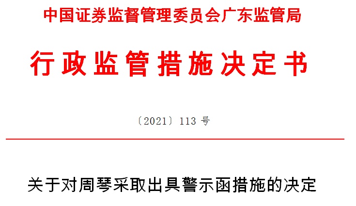 智通财经APP获悉,11月16日,广东证监局对周琴出具警示函。经查,周琴在光大证券股份有限公司(601788.SH,06178)广州大道中证券营业部从业期间,存在委托他人代理从事客户招揽活动等行为。上述行为违反了证监会相关规定。