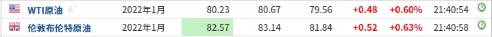 截至发稿,WTI原油涨0.60%,报80.23美元/桶。布伦特原油涨0.63%,报82.57美元/桶。