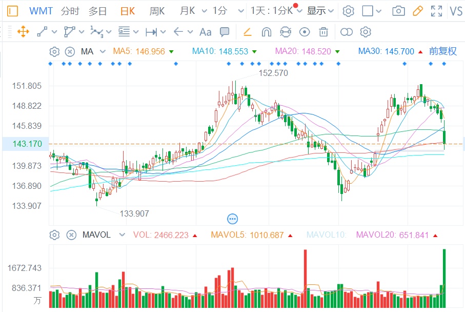 此前沃尔玛公布第三季度毛利率下降42个基点,导致其股价下跌2.5%。分析师们表示,沃尔玛微薄的利润率可能会持续到节日季的剩余时间。