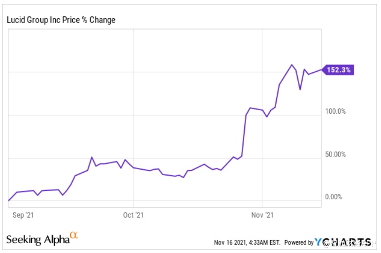 此次评级也是Lucid从9月开始并持续至今的上涨背后的主要催化剂。上个季度末,Lucid也开始向第一批客户交付产品。 正是由于这两个因素,Lucid的股价飙升。月初至今,该股涨超50%。