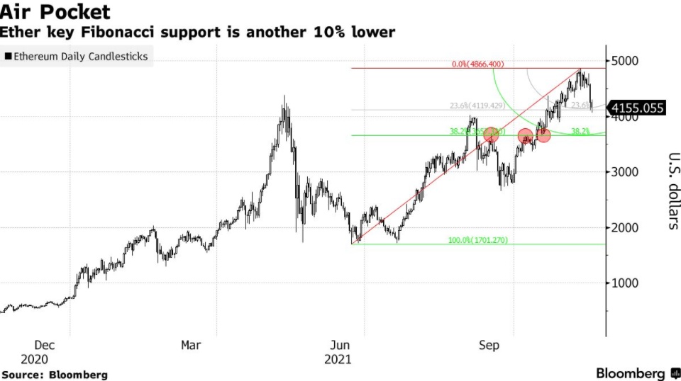 以太坊的斐波那契指标( Fibonacci )表明,以太坊面临进一步下滑的风险。