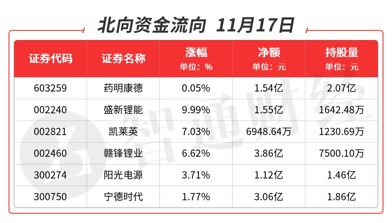 北向资金全天净流出-2.38亿元,买入的品种主要集中在医药、锂电池、光伏及储能类。重点品种如下图: