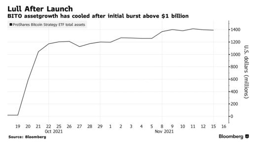 据了解,大约在一个月前,美国首只比特币期货ETF ProShares比特币策略基金(BITO)在纽交所正式上市,首日交易即创下历史记录。