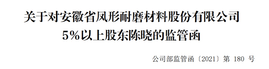 智通财经APP获悉,11月18日,深交所对凤形股份(002760.SZ)5%以上股东陈晓发出监管函。监管函指出,凤形股份于2021年11月6日披露的《关于公司5%以上股东亲属短线交易及致歉的公告》显示,陈晓持有凤形股份5%以上股份,其配偶杨明华于2021年7月15日买入凤形股份股票68,300股,成交金额2,098,393元;于2021年7月26日卖出凤形股份股票108,000股,成交金额4,629,545元。陈晓配偶的前述行为导致陈晓违反了《证券法》第四十四条和《股票上市规则(2020年修订)》第1.4条的规定。
