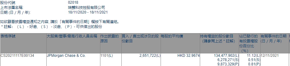智通财经APP获悉,香港联交所最新资料显示,11月15日,小摩增持瑞声科技(02018)265.17万股,每股作价32.9674港元,总金额约为8742.04万港元。增持后最新持股数目约为1.34亿股,最新持股比例为11.12%。
