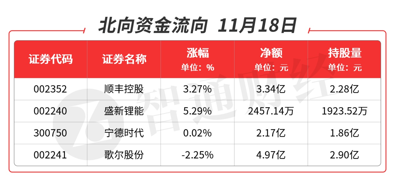 北向资金全天净流出-44.53亿元,买入的品种主要集中在快递、锂电池、电子及储能类。重点品种如下图: