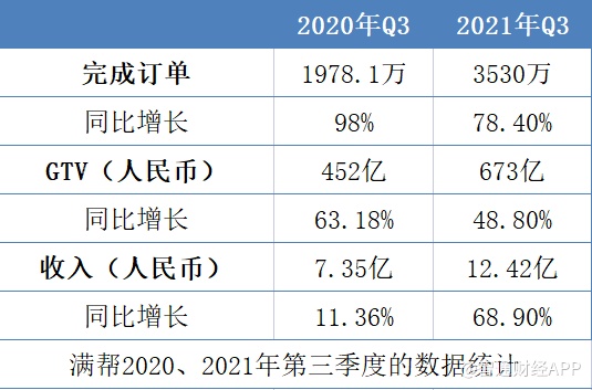 收入的远超预期,让市场颇为振奋,但业绩只是结果,其背后的逻辑才是满帮这份财报里最关键的信息。通过对2020、2021年第三季度的完成订单、GTV、收入三大指标的对比,智通财经APP发现了两点: