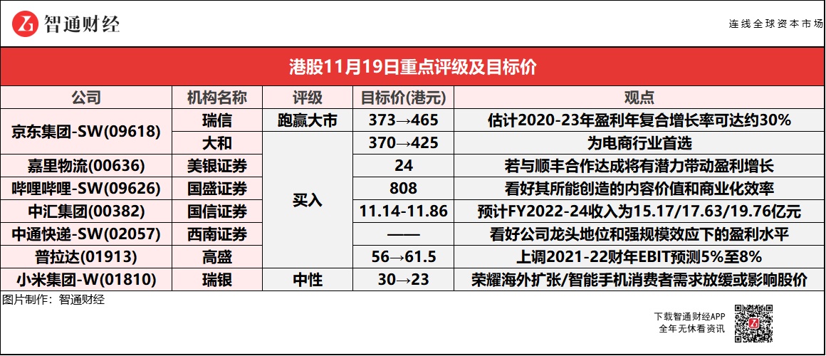 大和上调京东集团-SW(09618)2022-23年盈利预测2%-15%,主因潜在良好的新业务成本控制,预测2022年市盈率25倍,为电商行业首选。