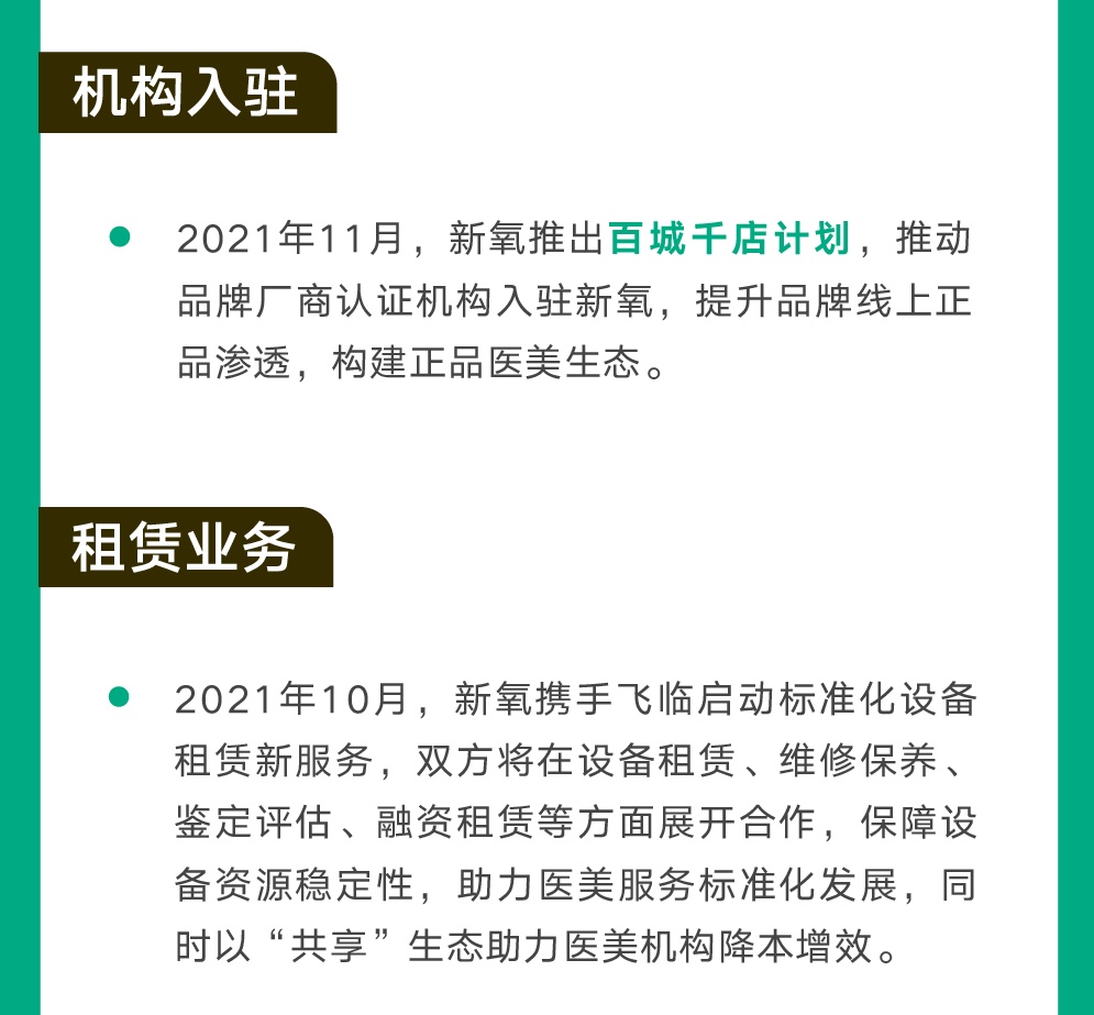 接下来,新氧有望将这一运营模式规模化。今年11月,新氧启动“百城千店”计划,该计划通过严选优质头部上游厂商,为厂商及其认证机构提供入驻权益及扶持政策,帮助厂商快速提升品牌线上正品渗透,联合平台+品牌厂商+认证机构三方,共建正品轻医美服务生态圈。