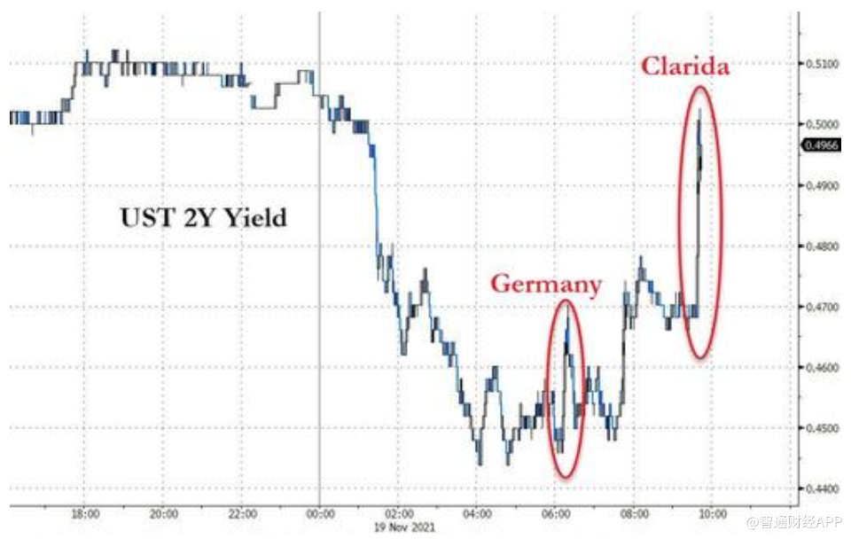 同日,美联储副主席克拉里达(Richard Clarida)也在另一场活动中表示,决策者在下个月讨论是否加快缩减债券购买的速度可能是合适的。克拉里达表态后,美国2年期国债收益率由跌转涨,美元指数飙升。