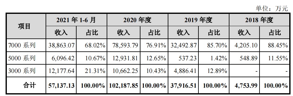 拆分业务结构来看,海光信息的核心收入来源主要来自于海光CPU系列产品,包括括7000系列、5000系列和3000系列,其中7000系列CPU又是核心来源中的“核心”,报告期内占销售收入比重分别为88.45%、85.70%、76.91%和68.02%。此外,截至报告期末,海光DCU已开始小批量生产。